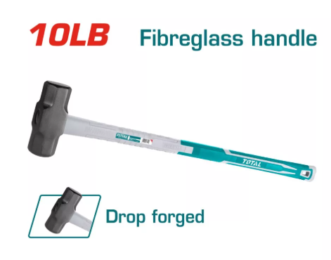 Ky është çekiçi i rëndë TOTAL 10LB me dorezë fiberglasi, i dizajnuar për punë ndërtimi, metali dhe demolimi që kërkojnë fuqi goditëse të lartë.