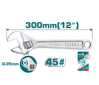 Ky është një çelës i rregullueshëm TOTAL me gjatësi 300 mm (12 inç), model standard i përdorur gjerësisht në punë mekanike dhe industriale.
