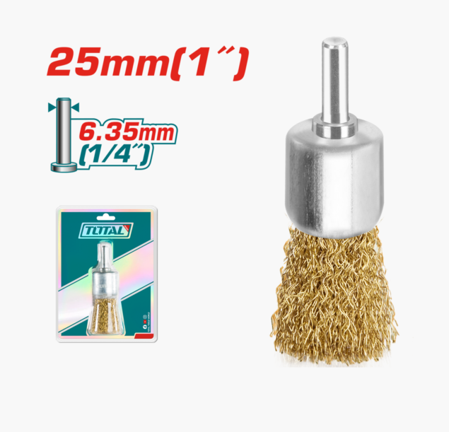 Kjo është një furçë cilindrike (end brush) nga TOTAL, me diametër 25 mm (1 inç) dhe bosht 6.35 mm (¼ inç).