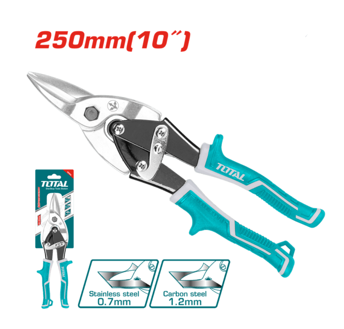 Kjo është gërshërë për llamarinë TOTAL Tools – 250mm (10”), një mjet profesional për prerjen e metaleve të holla dhe materialeve të ngjashme.