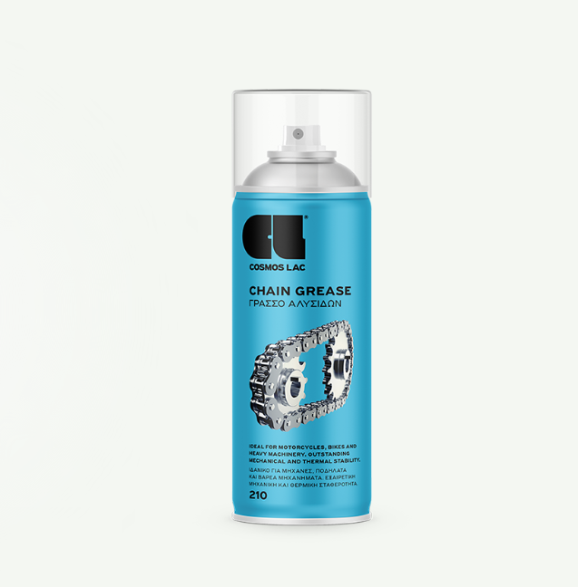 COSMOS LAC Chain Grease është gjalpë lubrifikues sintetike në formë aerosoli, që:Lubrifikon efektivisht zinxhirët, rrotat dhëmbëzuese dhe mekanizmat lëvizës;