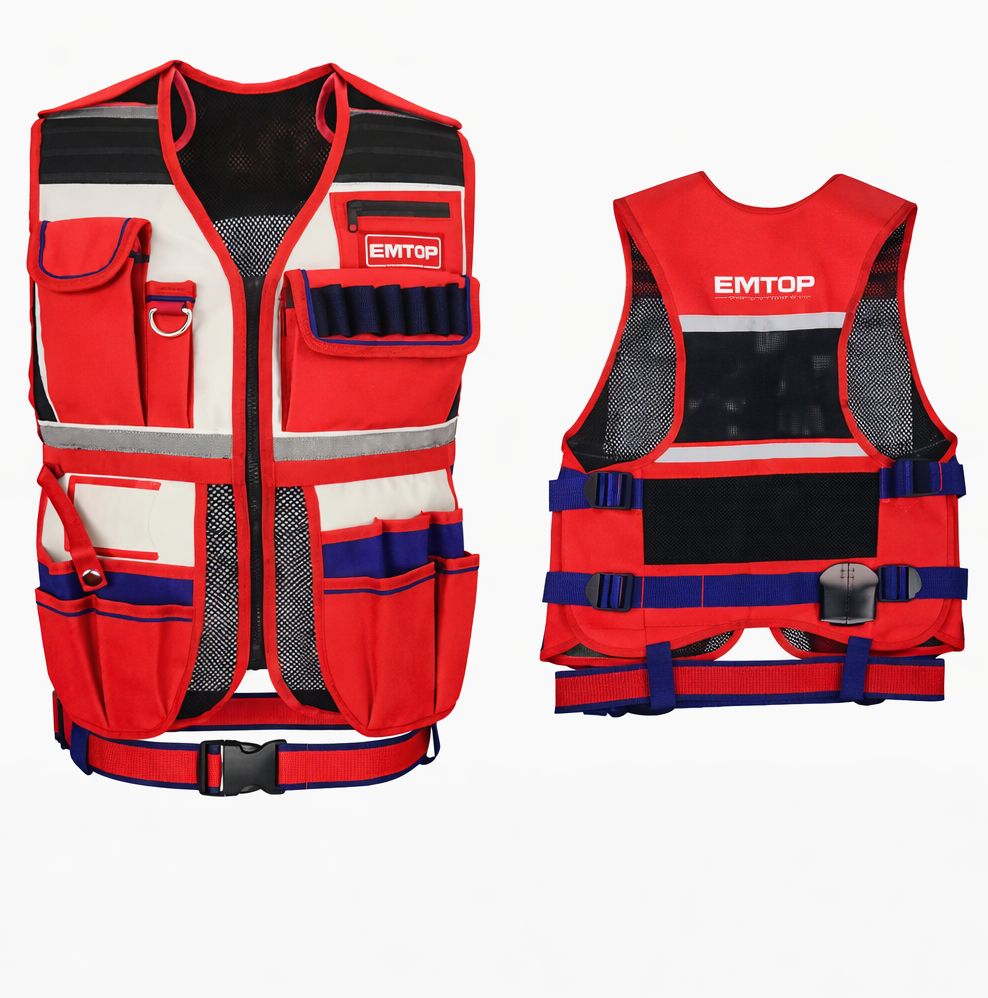 Jeleku i punës EMTOP është i projektuar për profesionistë që kanë nevojë për organizim, komoditet dhe siguri gjatë punës. Me ndërtim të lehtë por rezistent, ky jelek mundëson bartjen e veglave dhe aksesorëve të punës deri në 3 kg, pa kufizuar lëvizjen e trupit.