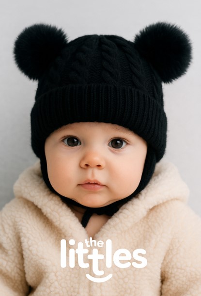 Kapuça The Littles në ngjyrë blu të errët është e punuar me gërsheta të trashë dhe dy pom-poma prej pushi, që i japin një pamje lozonjare dhe moderne njëkohësisht.