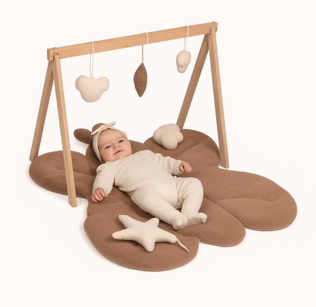 Ky kënd loje me dizajn në formë fluture është krijuar për të sjellë ngrohtësi, rehati dhe argëtim për beben tuaj. Dysheku i butë me ngjyrë kafe dhe struktura e drurit me lodra të varura ndihmojnë në zhvillimin e aftësive motorike dhe shqisave të foshnjës përmes lojës dhe vëzhgimit. Një produkt me stil klasik dhe detaje të buta, perfekt për ambientet e dhomës së bebes, që kombinon bukurinë me funksionalitetin.