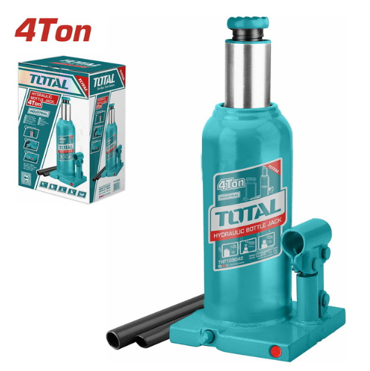 Kjo është një krik hidraulik vertikal (bottle jack) nga TOTAL, me kapacitet ngritjeje deri në 4 ton – një pajisje e fuqishme dhe kompakte, e përshtatshme për përdorim në automjete të zakonshme dhe SUV të mesëm.