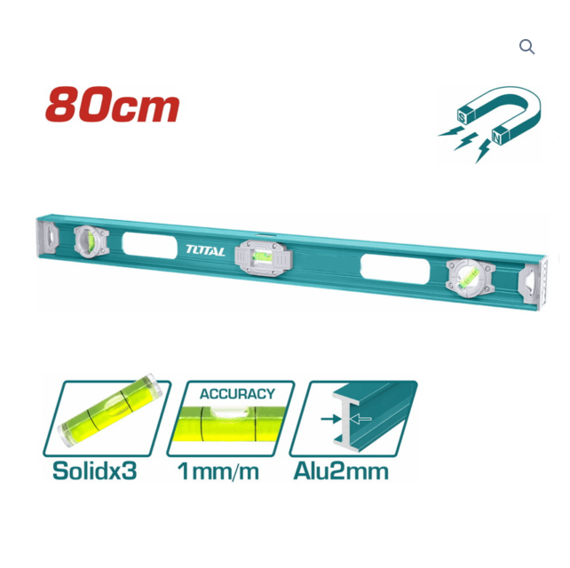 Tani po flasim për libellën (nivelin magnetik) TOTAL me dimension 80 mm (8 cm) — një model kompakt, profesional dhe shumë i saktë, i ndërtuar për punime precize në ndërtim, instalime dhe montime industriale.