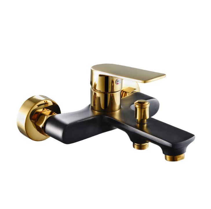 Ky është një rubinet për vaskë (bathtub mixer) me dizajn luksoz dhe ngjyrim kombinim i artë dhe i zi mat, që përfaqëson një stil modern premium. Ja detajet e plota 👇