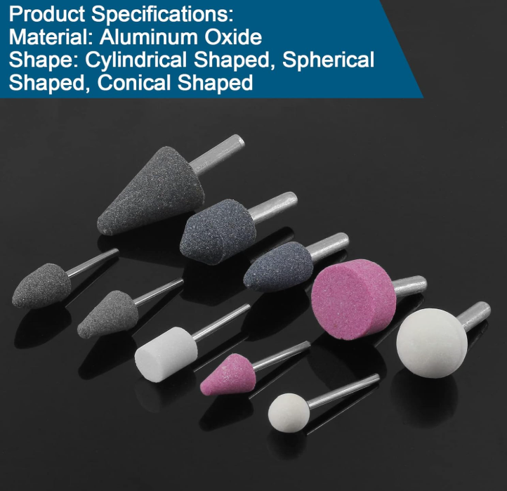Në këtë foto paraqiten guret për mprehje (Grinding Stones / Mounted Points) – vegla shumë të përdorura në stërvitje elektrike, minimakinë (dremel) apo makina pneumatike për bluarje, lëmim, mprehje dhe përfundim sipërfaqesh.