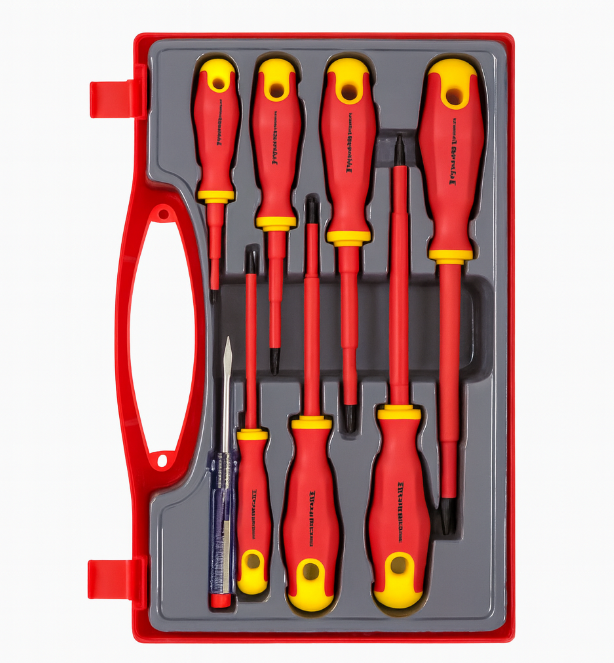 Ky është një set kaçavidash të izoluara për elektricistë (zakonisht VDE), i vendosur në kuti plastike.