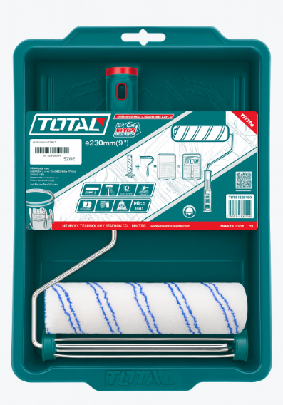 Ky set përfshin një rul 230 mm (9”), dorezë metalike me kapje ergonomike, dhe tabaka plastike për mbajtjen dhe shpërndarjen e bojës.