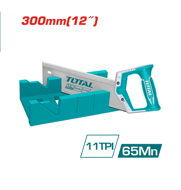 Kjo që ke dërguar është një sharrë dore për dru me kuti prerjeje (mitre box saw set) nga marka TOTAL — një mjet shumë praktik për prerje të sakta në kënde të ndryshme, veçanërisht në punime druri dhe kornizime.