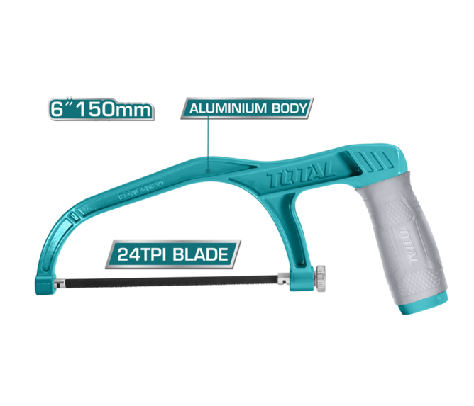 Kjo është një sharrë dore (mini hacksaw) nga marka TOTAL, e projektuar për prerje precize të metaleve, plastikës dhe materialeve të ngjashme. Ja disa detaje për të: