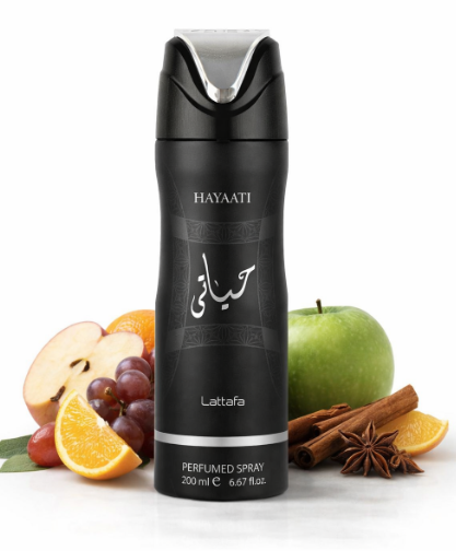Hayaat – Lattafa është një spray parfumi me aromë të freskët dhe energjike, që kombinon nota frutore me erëza të lehta dhe një bazë të butë druri. Hapet me freski të këndshme frutash, ndërsa në vazhdim shfaqet një ngrohtësi elegante që e bën aromën të balancuar dhe tërheqëse. I përshtatshëm për përdorim të përditshëm, ofron një ndjesi pastërtie, force dhe qëndrueshmërie gjatë gjithë ditës.