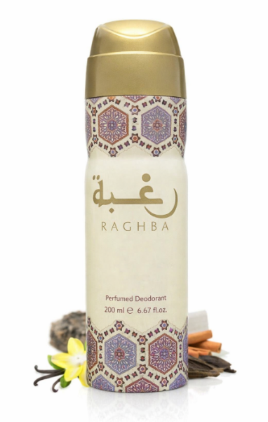 Raghba – Lattafa është një deodorant parfumi me aromë të ngrohtë, orientale dhe të ëmbël, që kombinon nota vaniljeje, oud-i dhe erëza të buta. Aroma është e pasur dhe qetësuese, me një karakter elegant dhe sensual që qëndron gjatë. I përshtatshëm për përdorim të përditshëm, ofron freski dhe një ndjesi luksi që të shoqëron gjatë gjithë ditës.
