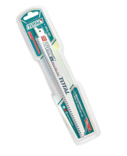 Ky është TOTAL Reciprocating Saw Blade Set për Dru dhe Metal – 2 Copë (TBS922HF), një set tehesh të forta profesionale për sharrë reciproke (sharrë elektrike), të dizajnuara për prerje të shpejtë dhe të pastër në dru, dru me gozhda apo metale të holla.