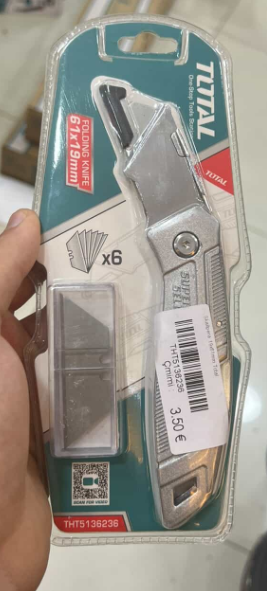 Përdorim: Përdoret zakonisht për prerje precize të materialeve si karton, tapet, plastikë, dhe materiale ndërtimi të lehta.